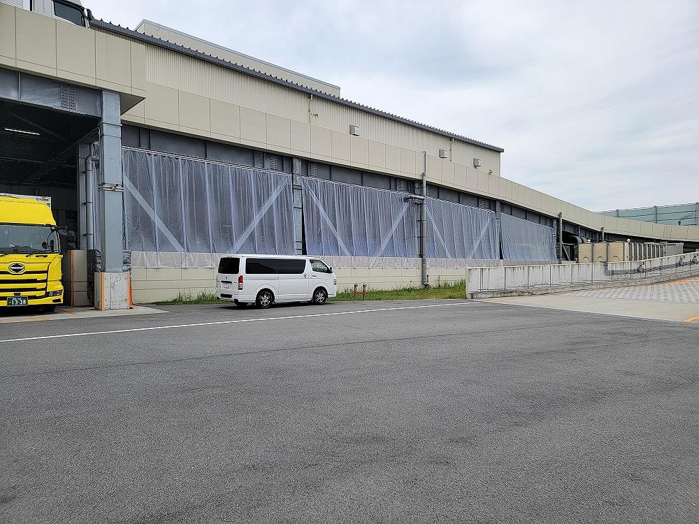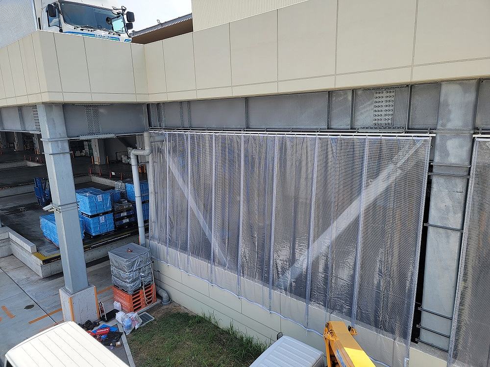 9月2日兵庫県の物流センターに 雨除け 風対策でビニールカーテンの