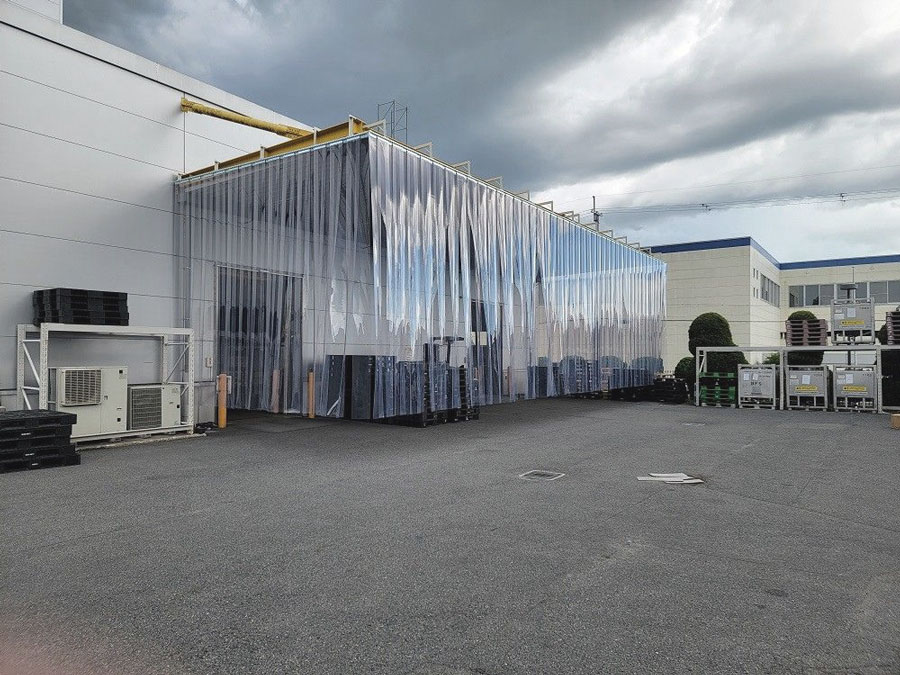 奈良県の工場に短冊状のビニールカーテンを設置をさせていただきました。